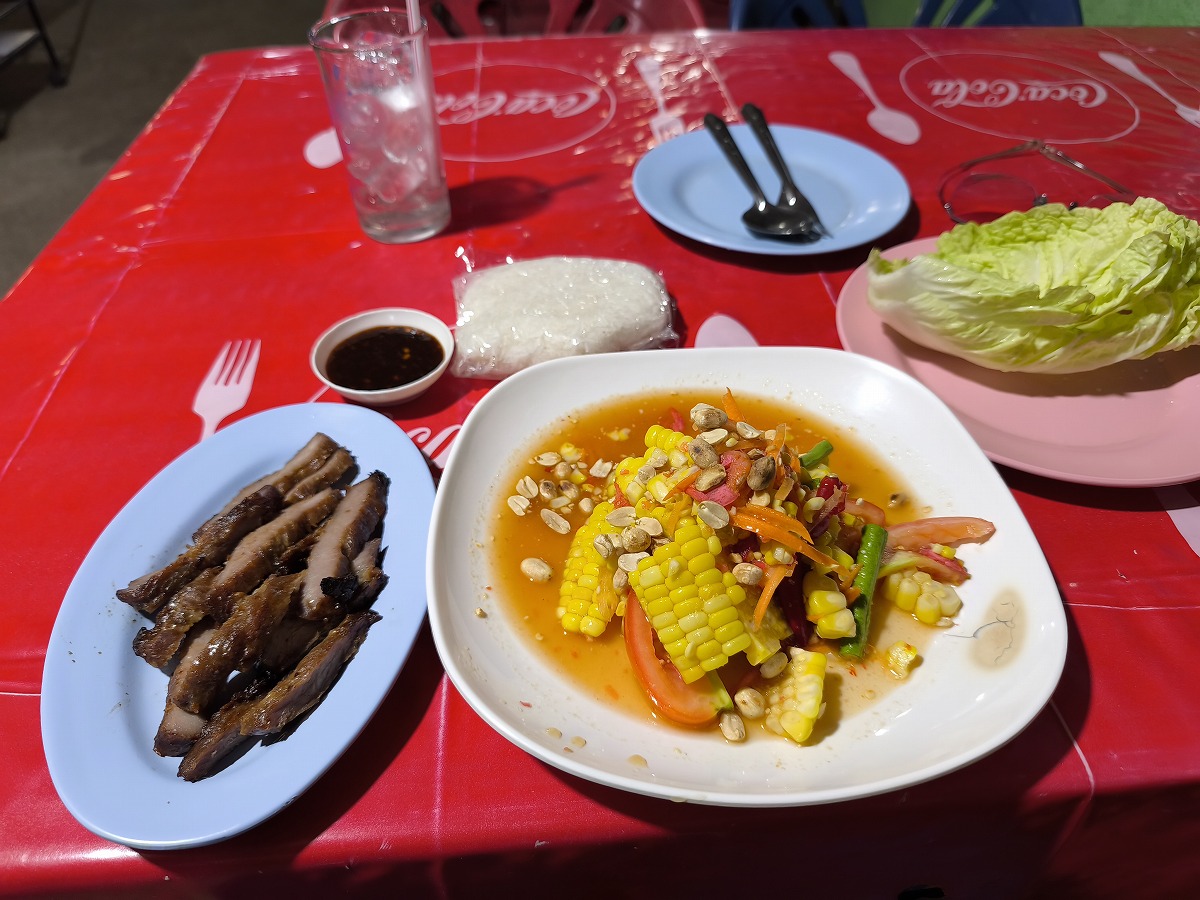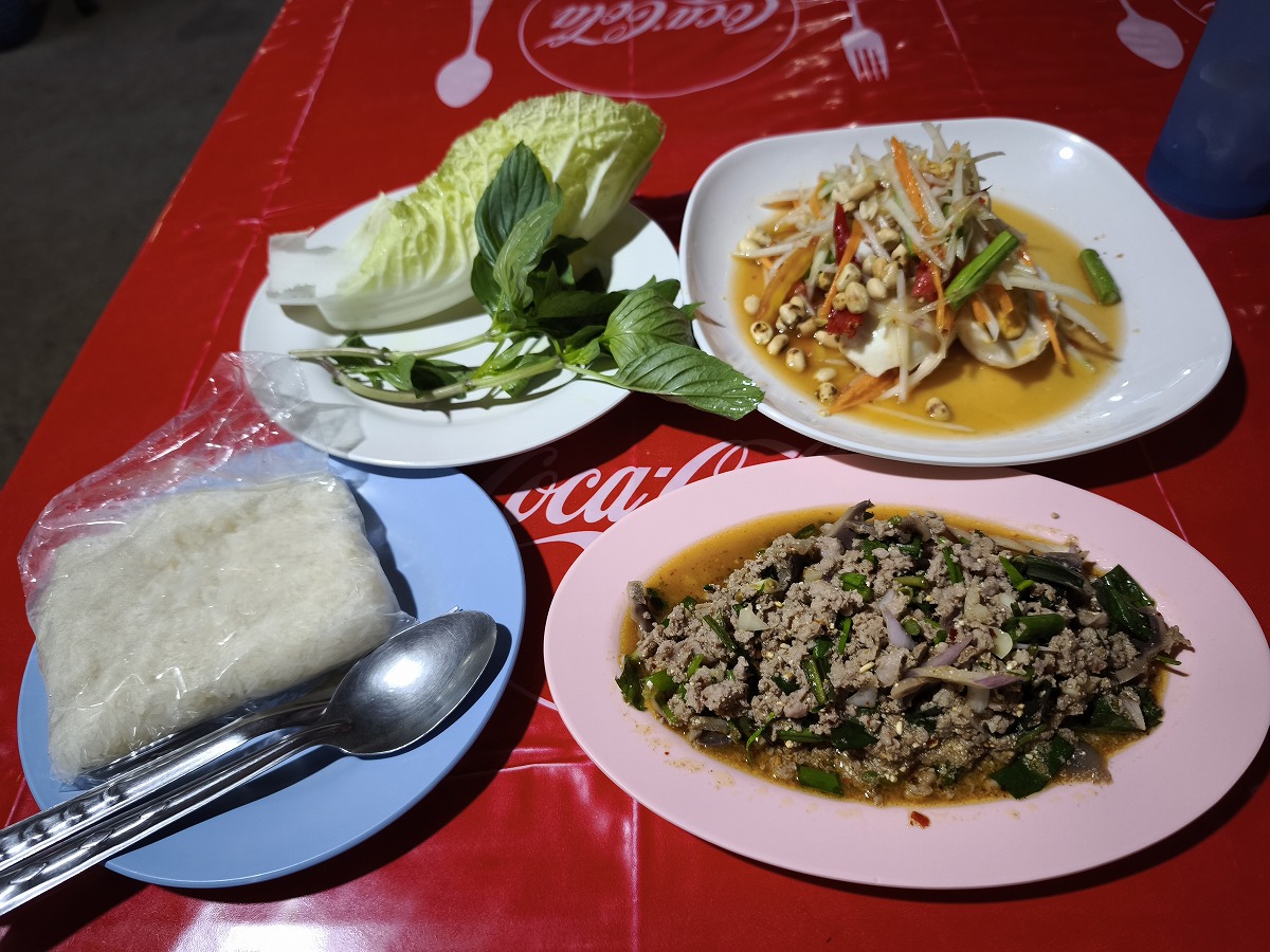 味は、パタヤのイサーン料理店、ラーブノンカーイと同じ。同じ人が調理したのではないかっていうくらい同じ味だった。