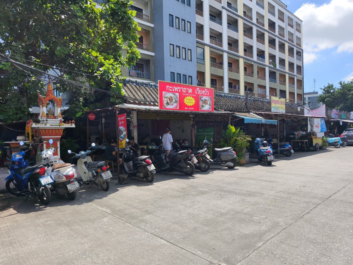 blog サンティタム タイメシ(一般の食堂) ガパオライス大盛りの店。กะเพราถาด เวียงบัว 2025年10月3日 教えていただき、行ってきました。 残した食器がそのまま。かなり大盛りなのだろう。 メニューはこちら。同じものだと思う。 とりあえず、「ガパオライスB50」と注文。とにかく「小」にしないと危険らしい。 皿が大きい。 とにかくご飯の量が多い。おかず部分は普通かも。 余裕で完食です。 Facebook post
