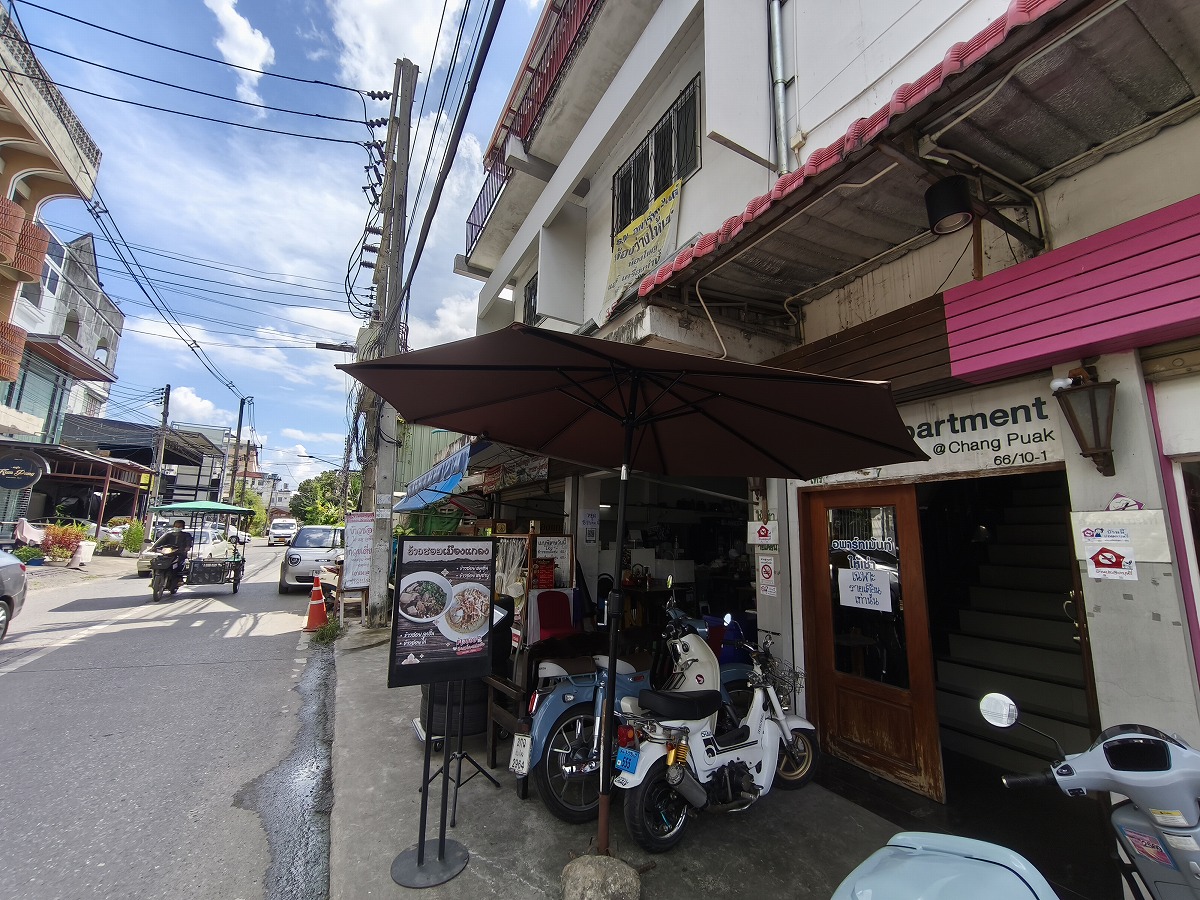 blog カオソーイ サンティタム かなりポイント高いカオソーイ。Khao Soi Mueang Klaeng 2025年10月17日 よく行くコーヒー雑貨店の隣にカオソーイ店があるというので行ってきた。 入口は狭そうだが、中は意外と広い。 主さんは中華系の人かな。 メニューはこんな感じ。大盛りメニューがある。 "big"と言ったら"beef"と間違われた。"extra"といえばよかったのか。 ハシが高級感があるのがいい。なかなかのおいしい。スープも結構飲んだ。 自分の中でかなりトップクラスにランクインです。 Facebook post