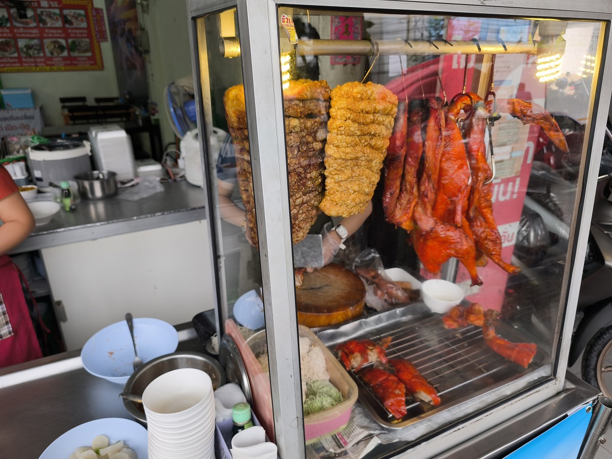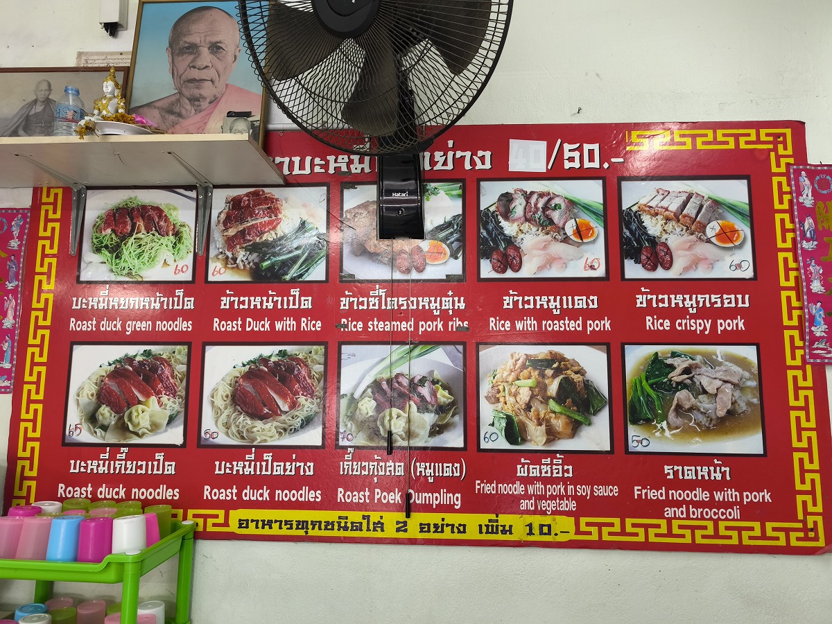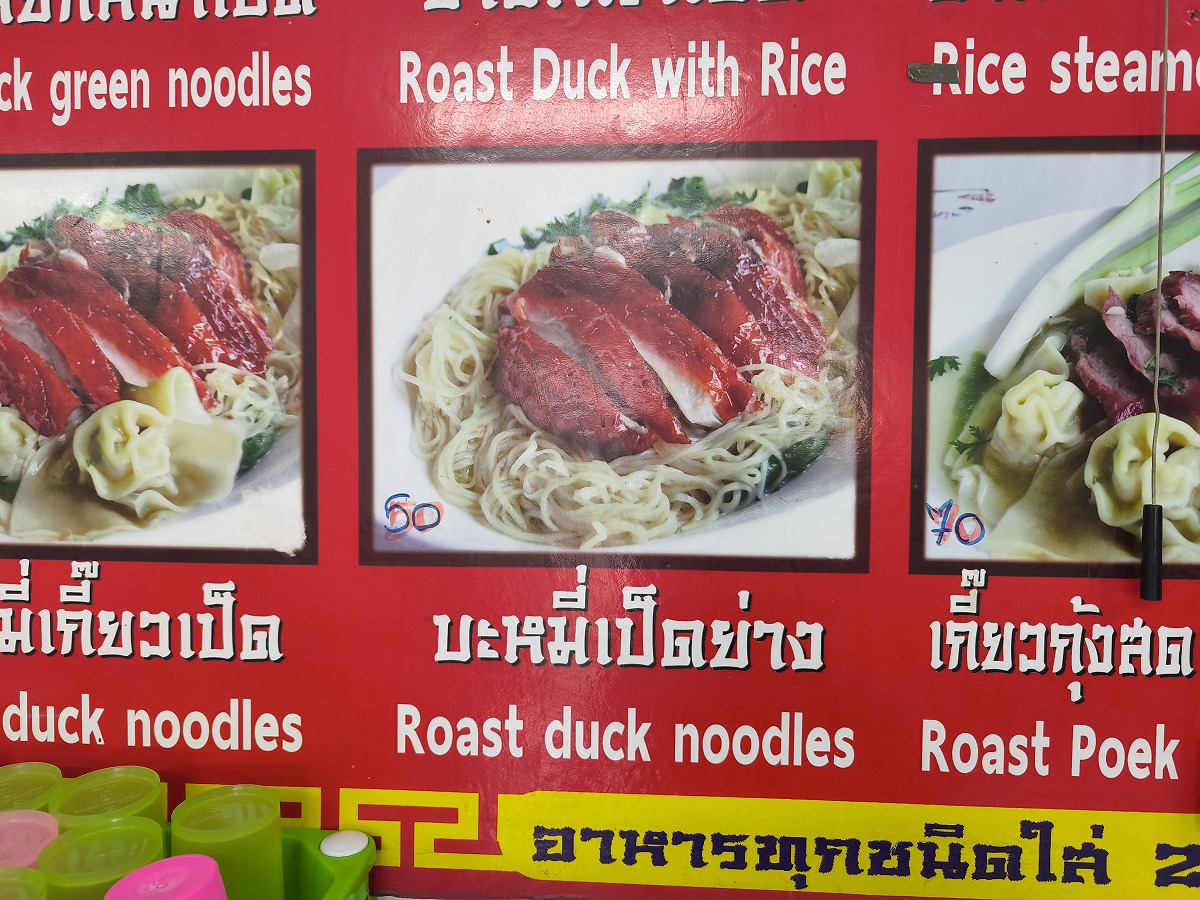 blog タイメシ(一般の食堂) ピン川・新市街 ダッグヌードルをいただく。ซัวเถา บะหมี่เป็ดย่าง 2025年10月31日 いつも水を買っているBig Cの隣に小さな食堂があるのが気になっていたので入ってみる。 赤い肉なのは着色料だろうか。 メニューはこちら。 9時過ぎなのかわからないが、右下の2つはできないらしい。 この、ローストダックヌードルにする。B50。 とてもおいしい。量は少なめ。食べた気がしない(笑) 次は2種類食べよう。 Facebook post