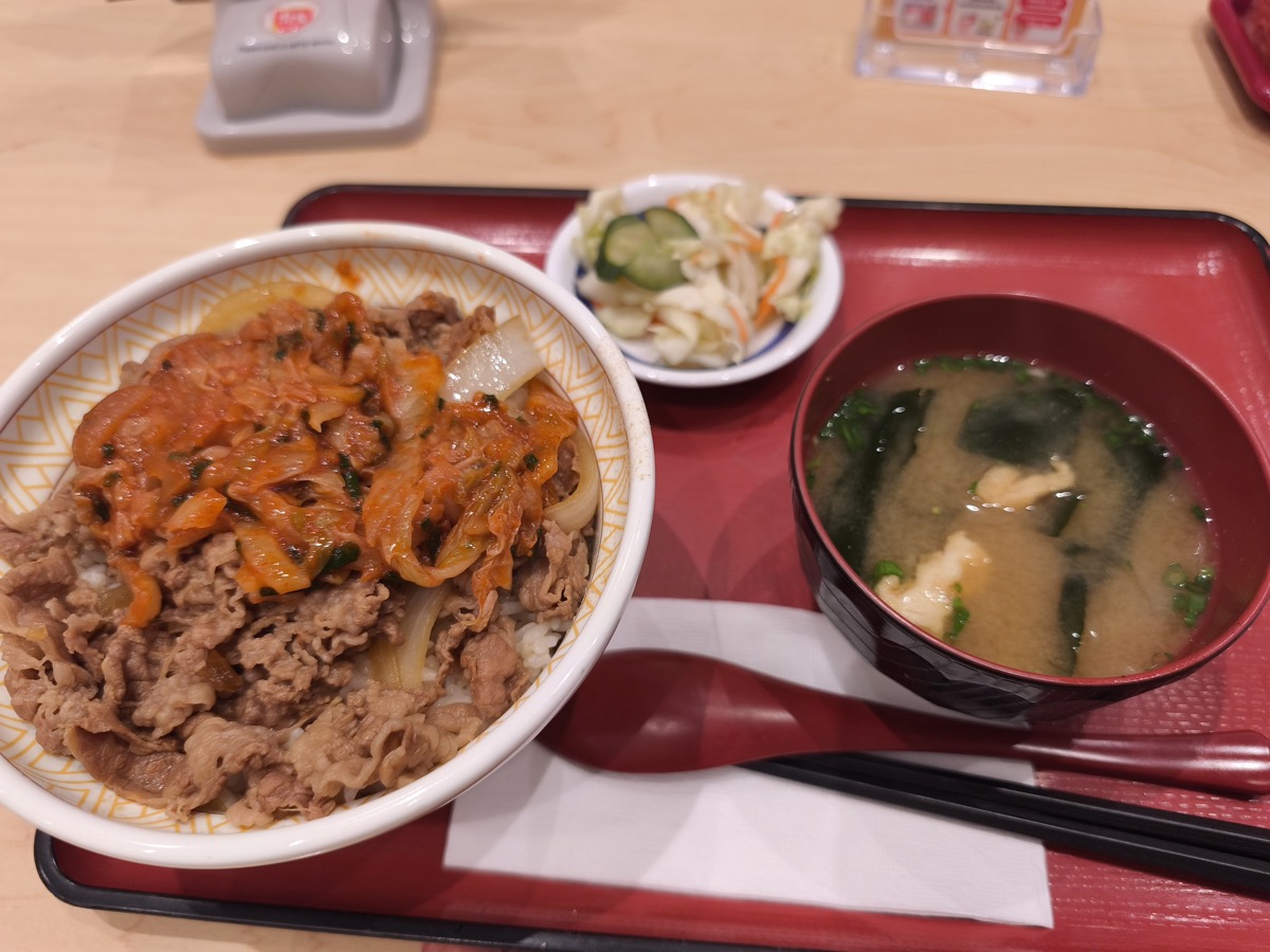 キムチ牛丼 L、おしんこセット=B180だったかな。
