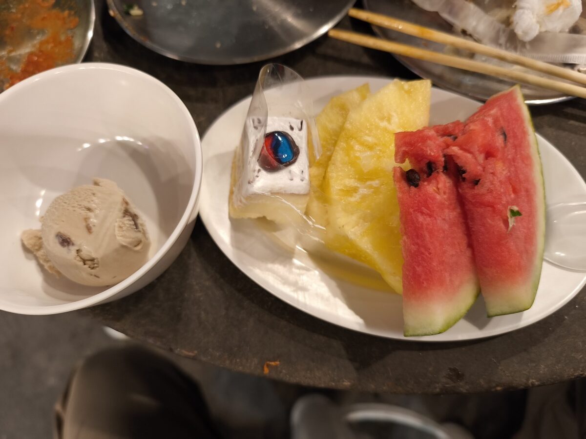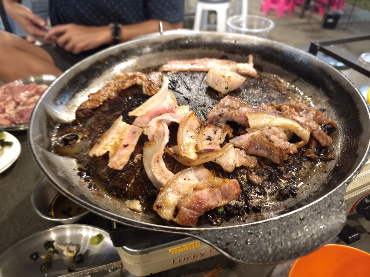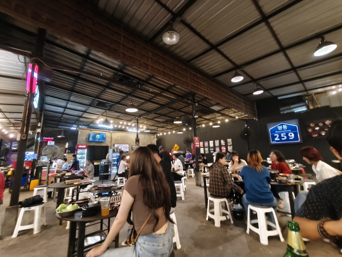 blog 食べ放題 韓国焼肉食べ放題の店。ミョンドン ブッフェ เมียงดง บาร์บีคิวบุฟเฟ่ต์เกาหลี 2025年12月5日 先日行った、ムーガタの店の隣に韓国の焼き肉食べ放題の店があるので、日本人男4人で行ってみた。 人気店のようでかなり混雑。 この近辺は食べ放題の店が固まっている。 写真を取り忘れたが、肉はイマイチ。 豚ばら肉ばかり食べた。カルビとロース、おいておくべきでしょ。 ラムレーズンアイスはおいしかった。 食べ放題B259。ジュース、スムージー、デザート込み ビールは大瓶B75など。 Facebook post