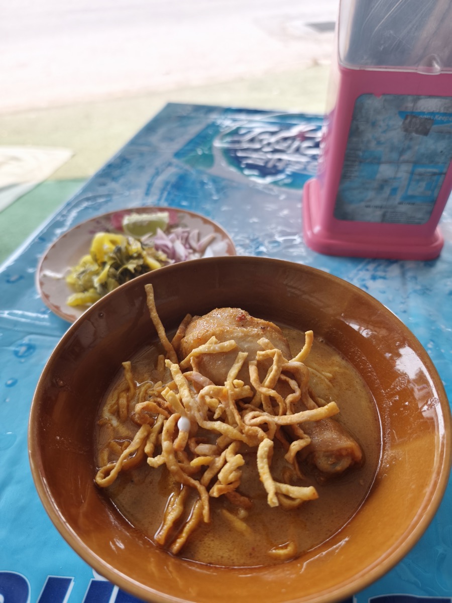 先日、通りすがりでスイカを買った(B45)時、おじさんの人が良さそうなので食堂に寄ってみた。 ハスの仲間かな? メニューの撮影を忘れた。無難にカオソーイを注文。ふつうにおいしかった。 たったのB40。今まで食べた中で最安 … 続きを読む カオソーイも、最安値。B40。ข้าวซอยแม่สมศรี